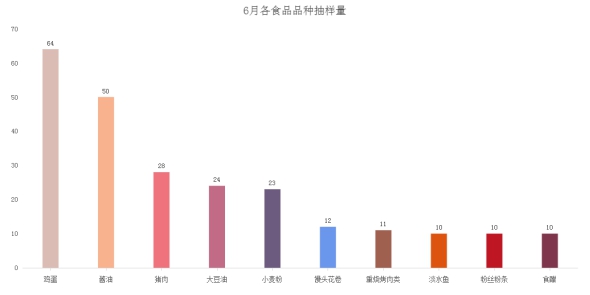 6月份全省通过“你点我检 服务惠民生”民意征集系统参与活动人次共计9184次。群众点选榜单前十的食品品种为大豆油、酱油、猪肉、小麦粉、大米、鸡蛋、牛肉、淡水鱼、馒头花卷、苹果等。