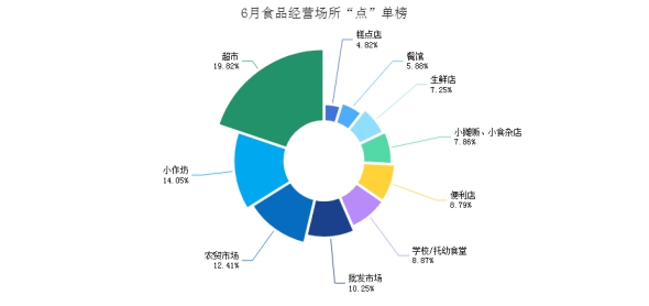 群众点选榜单前十的食品生产经营场所为超市、小作坊、农贸市场、批发市场、学校及托幼食堂、便利店、小经营、生鲜店、餐馆、糕点店等。