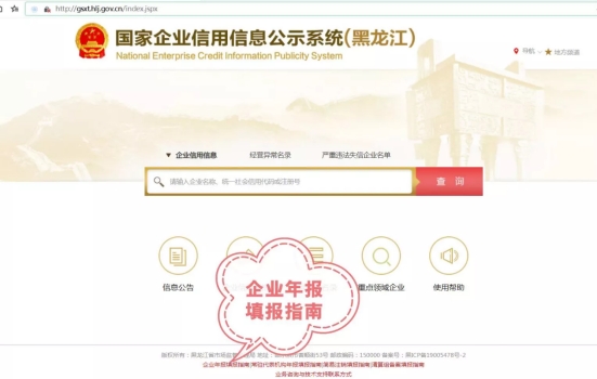 如需详细了解年报申报有关事宜,请登录国家企业信用信息公示系统(黑龙江),点击页面最下方“企业年报填报指南”进行查看。